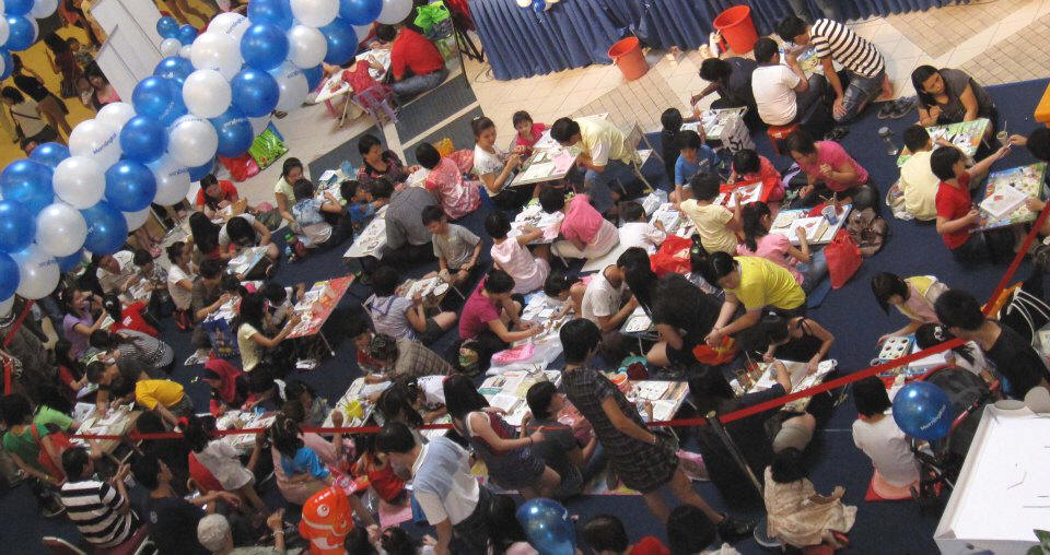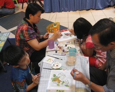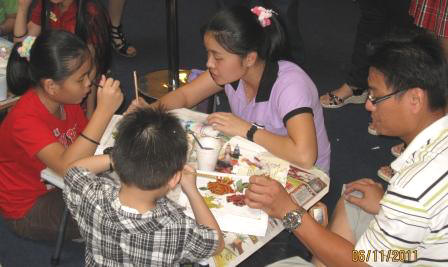 Parent and children colour batik together ........